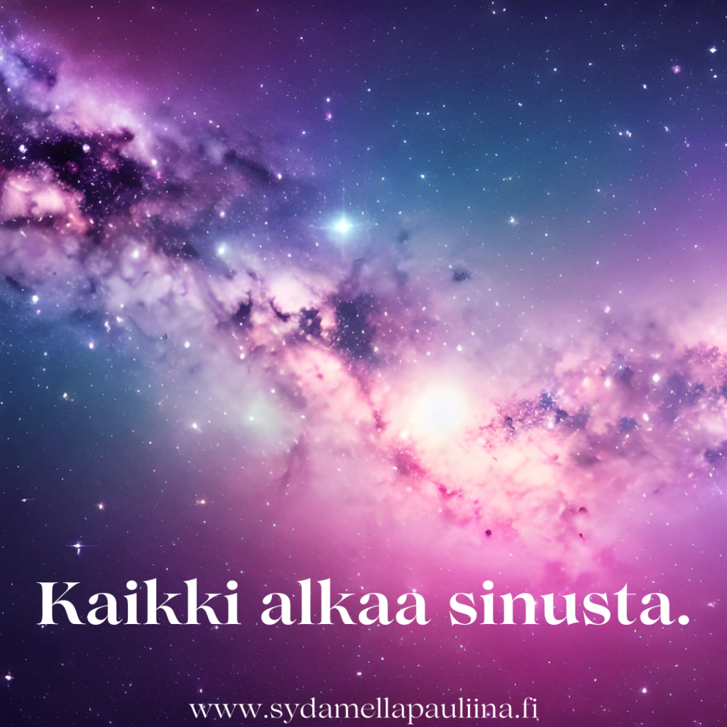 Elämäsi rakentuu itsesi ympärille, joten kaikki alkaa sinusta ja siitä kuka olet syvällä sisimmässäsi. Siitä että palaat takaisin kuuntelemaan, mitä sinun sydämesi ja sielusi tahtoo, ja mitä se oikeasti tarvitsee. Vaikka elämäsi näyttäisi ulospäin hienolta ja kaikki olisi periaatteessa hyvin, saatat kokea kuin siitä puuttuisi jotain oleellista, syvää, aitoa. Kaipaamme, mutta emme tiedä mitä. Mitä sinä oikeasti haluat kokea tämän ainutlaatuisen elämäsi aikana? Me eletään niin helposti sellaista pintapuolista elämää. Se ei tuo kuitenkaan onnea, vaan pidemmän päälle tyytymättömyys kasvaa sisälläsi. Ja jossain kohtaa tulee se raja vastaan. Ei kaikilla, mutta useimmilla, ja herää kysymys, miksi elän tällaista elämää? Onko elämän todella tarkoitus olla tällaista?